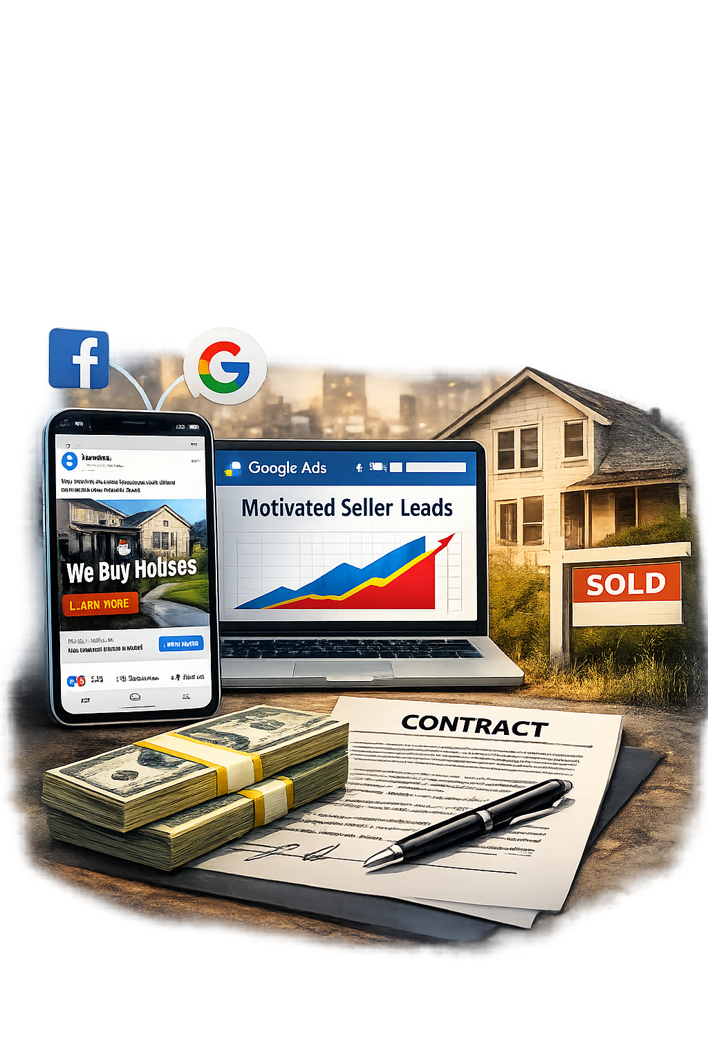 We build predictable Meta & Google ad systems that deliver exclusive motivated seller leads — so you can lock up more contracts without cold calling, list stacking, or burning out.